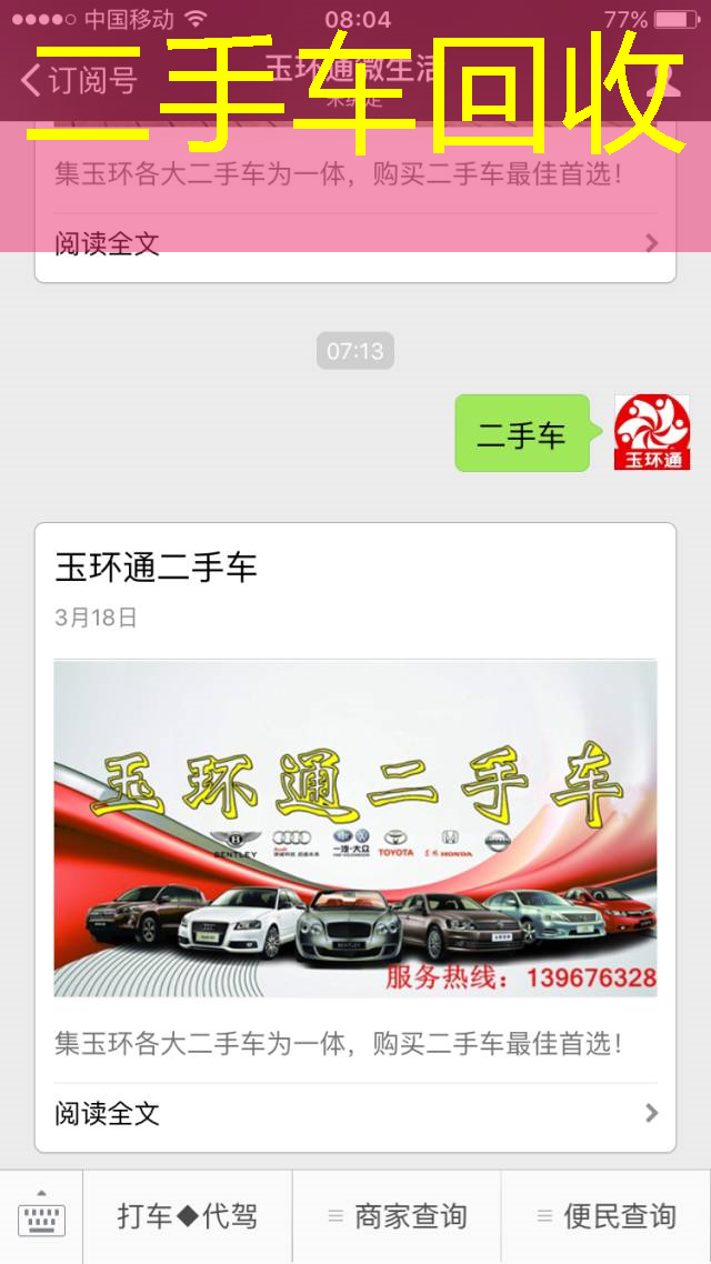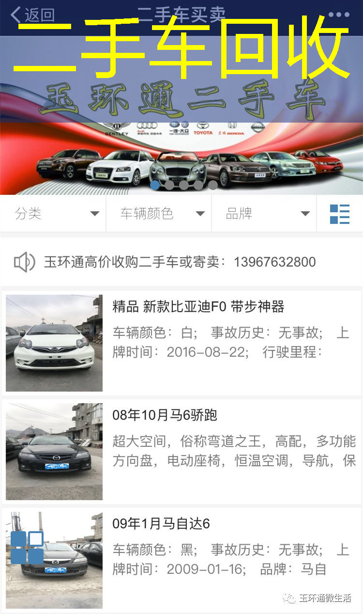 ▲扫一扫进入玉环通二手车平台